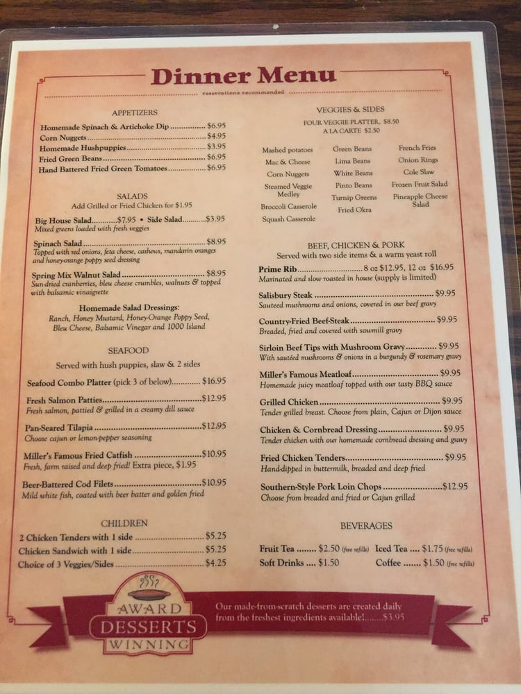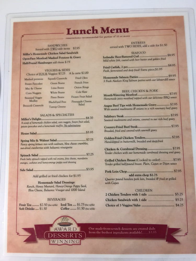 Miller's Grocery Menu